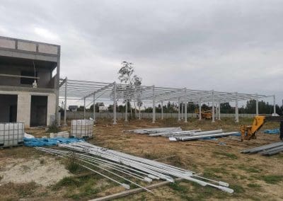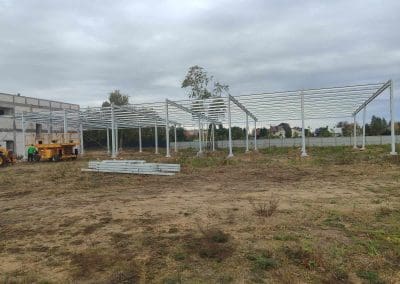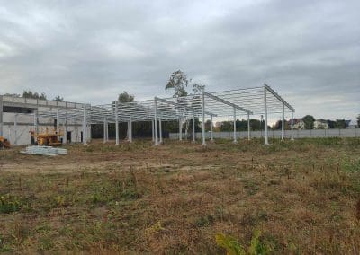 Aktualnie wykonujemy montaż konstrukcji stalowej słupowo-ryglowej o wymiarach 15,3x42x5,5 w miejscowości Radzyń Podlaski. Konstrukcja zabezpieczona poprzez malowanie ppoż. Hala usługowa jednospadowa w konstrukcji stalowej z przeznaczeniem na warsztat oraz serwis obudowana płytą warstwową.