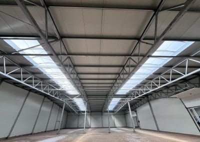 Zakończyliśmy montaż pasm świetlnych łukowych z klasyfikacją ogniową NRO o wymiarach 2,16×14,86m w liczbie 8 sztuk. Budynek z przeznaczeniem na magazyn w okolicach Dąbrowy Górniczej. Oferowane przez nas pasma świetlne łukowe zapewniają bardzo dobre doświetlenie przestrzeni, a ponadto działają na korzyść firmowego budżetu. Tego typu okno na dach ogranicza koszty zużycia energii elektrycznej, a dostarczane przez nie światło nie męczy oczu. W połączeniu z dużym wyborem modeli i znakomitą jakością, to istotne rozwiązanie. Produkt ten cechują bardzo dobre właściwości fizyczno-chemiczne, a jego największe atuty to odporność na wilgoć, grad, działania wysokich temperatur i odporność na mrozy.
