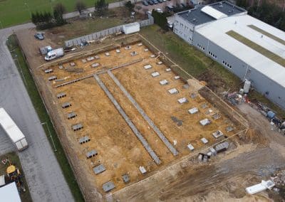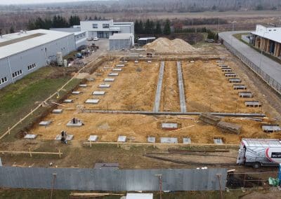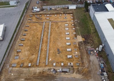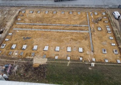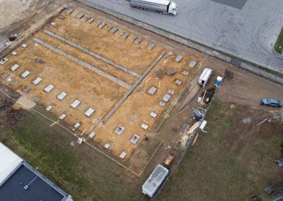 Obecnie zbliżamy się do ukończenia etapu wykonania stóp fundamentowych w hali produkcyjno-magazynowej w okolicach Warszawy. Kształt stóp fundamentowych w tym przypadku dostosowywano do indywidualnych potrzeb i projektu budowanego. Ich podstawa ma jednak najczęściej formę kwadratu lub prostokąta.
